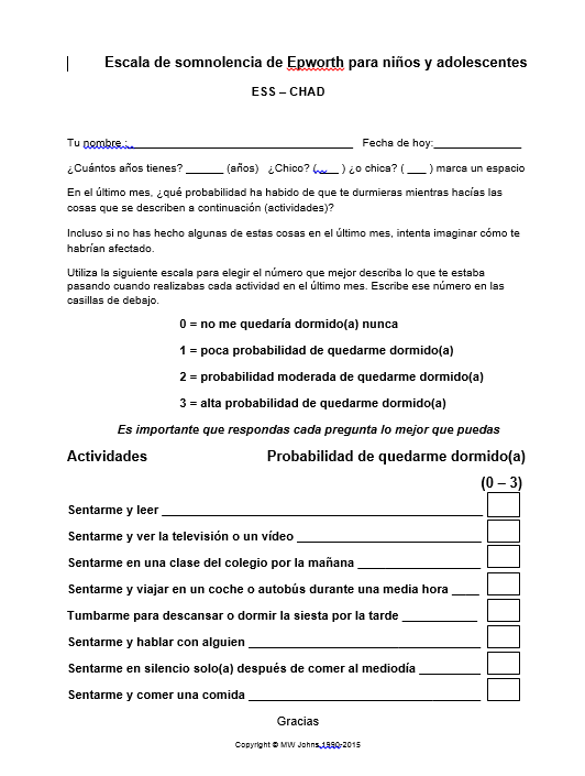 Como casi todo en neuropediatría, lo más importante es la historia clínica, ayudándonos de la agenda de sueño y de cuestionarios de somnolencia como el de Epworth o de Stanford.